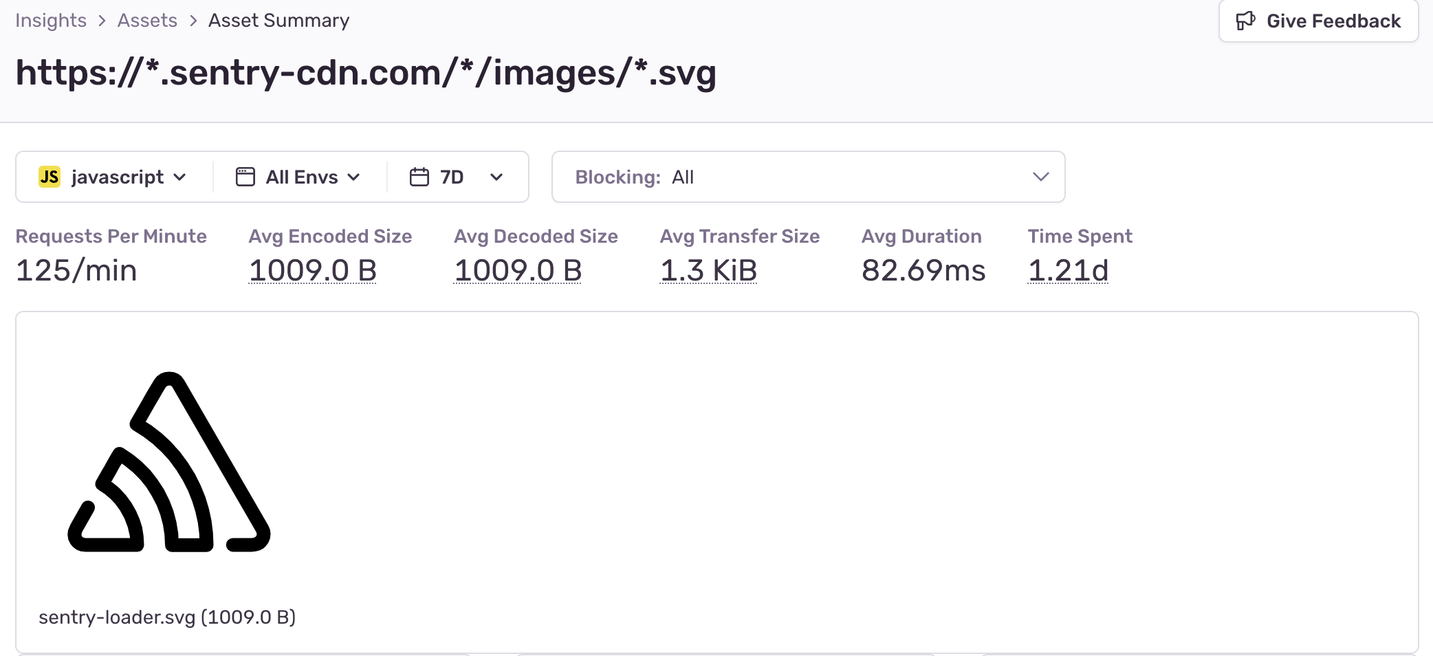 To enable Sentry to group similar assets together, Sentry parameterizes asset URLs, removing potentially dynamic elements. This helps track the performance of a particular asset across different releases, even when they have dynamic segments (used for busting caches or CDNS).